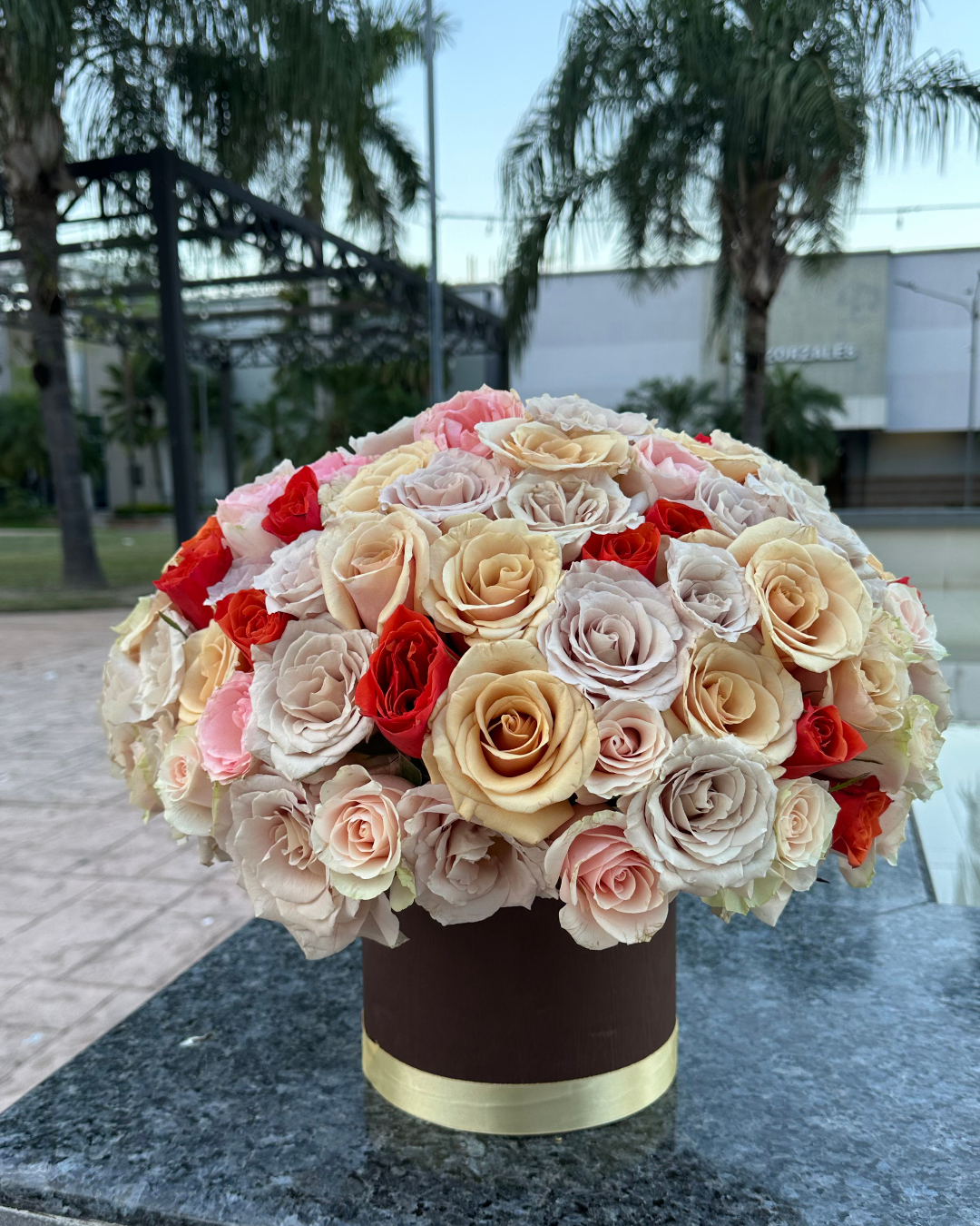 Hermoso arreglo de 180 rosas en forma circular de multiples colores