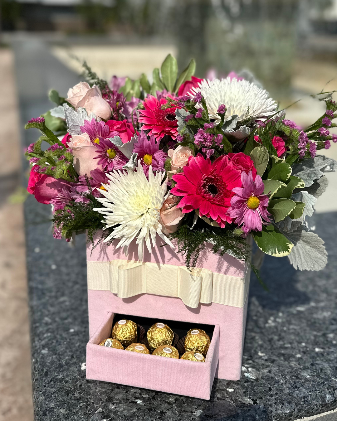 Hermoso arreglo de gerberas, fuyi, dusty , mexicano , rosa, margarita , green ball , estaticia morada